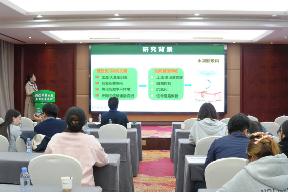 我们陈朝霞副教授在会议上作了题为《基于智能多功能水凝胶敷料的皮肤修复与再生策略》的学术报告,系统介绍了团队在智能响应水凝胶构建及皮肤组织修复领域的最新突破,获得了现场专家学者的高度关注和积极评价。